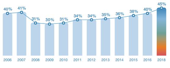高于全球平均水平45%