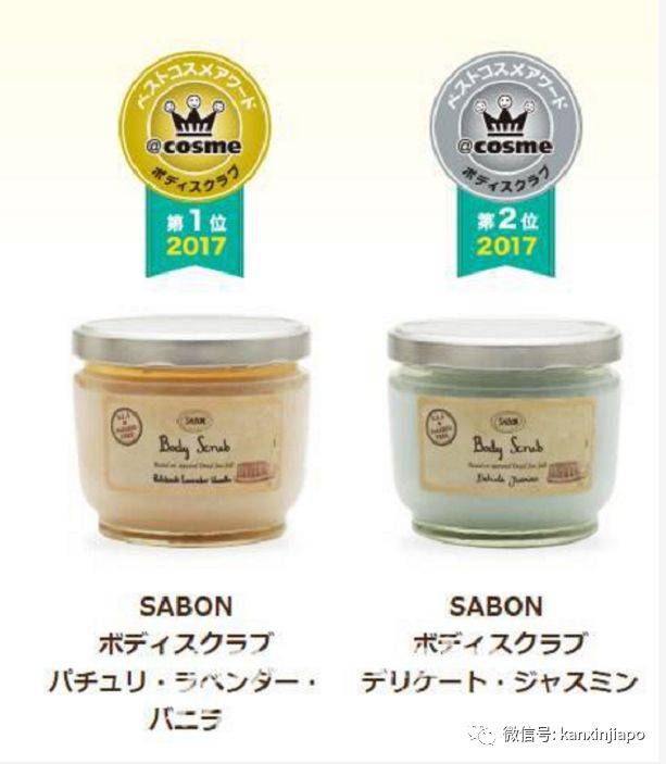 (SABON入选2017年cosme大赏身体磨砂类的第一名和第二名)