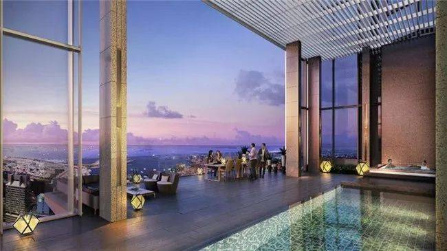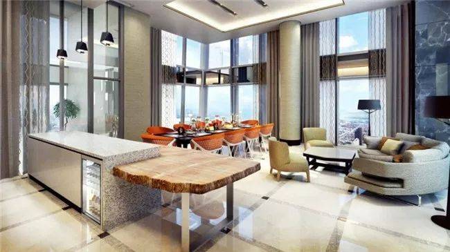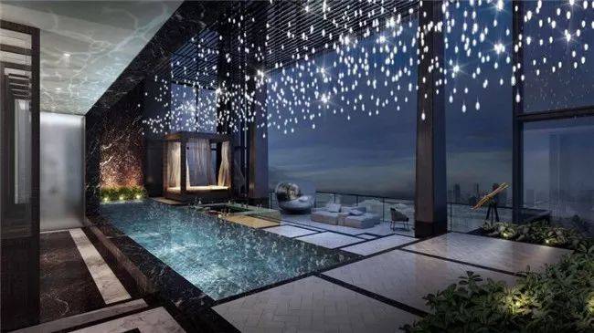 这套公寓在64层,本身有三层,并带有一个私人游泳池。