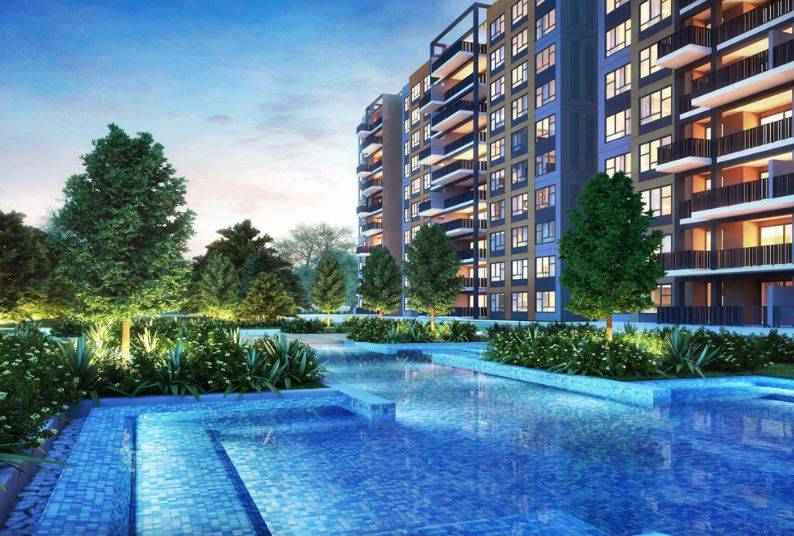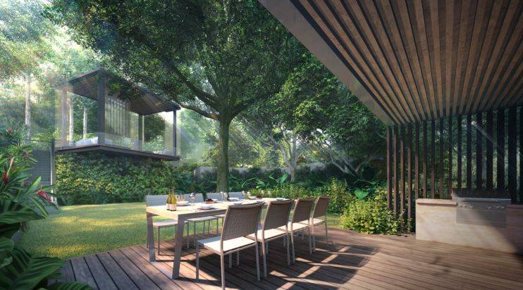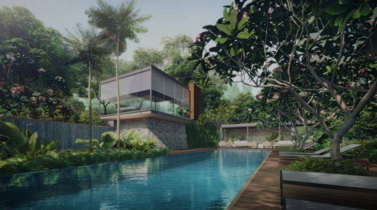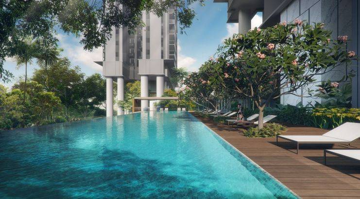 由于项目占地面积大,多达21100平方米,采用地面挑高的设计,这样保证100%地面都可以用来做小区配套设施、绿化等,多达80多种公寓配套设施供业主使用,拥有多达7个泳池和热带雨林景观。一共有三栋楼,所有单位都是南北向,采用平行的建筑设计,无呼吸阻挡,视野开阔,180度景观,有四种不同的景观,中央商业区景观,南部山脊景观,海景,武吉知马景观。