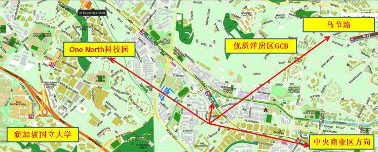 只需4站地铁到达中央商业区CBD, 2站地铁到波那维斯达站/Buona Vista MRT(地铁转换站,可转搭黄色的环线) ,3站地铁到达One North MRT,开车6分钟即可到达One North科技园,办公楼包括Biopolis, Fusionpolis和Mediapolis ,其中Biopolis办公楼主要是生物制药科技公司,主要集中医药研发这块。