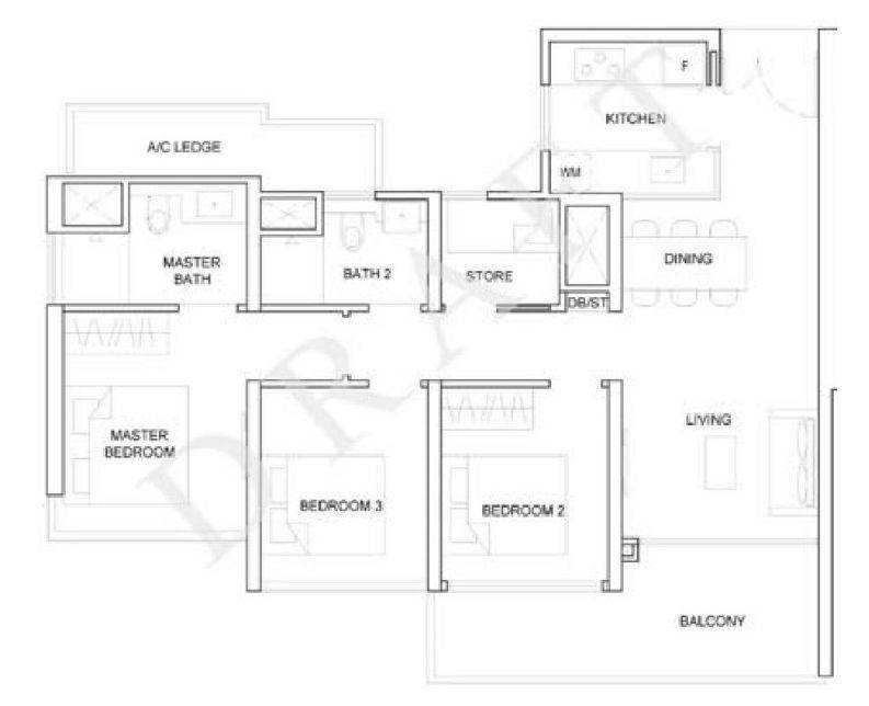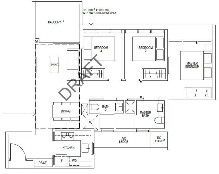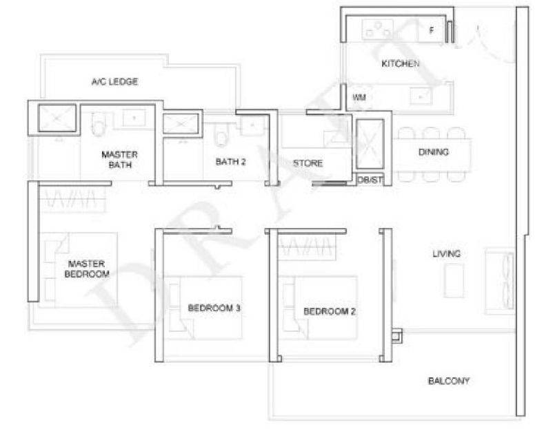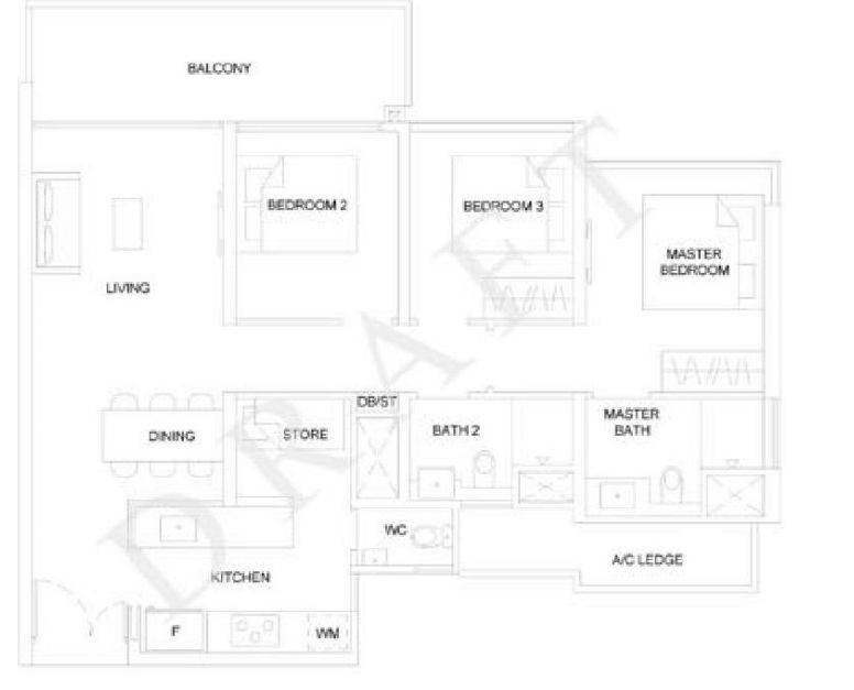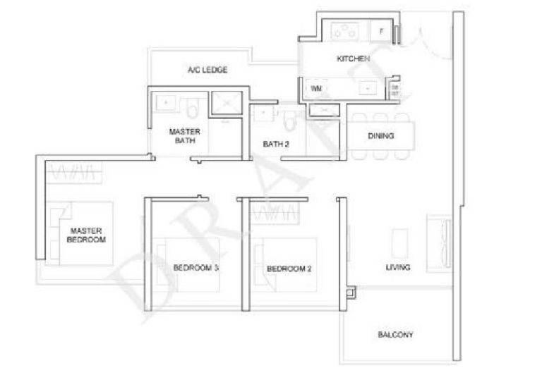 3房豪华型,106平方米/1109平方英尺,配大阳台享受漂亮河景或者小区泳池景,每个房间都够大可以放双人床,主人房就更不用说了。