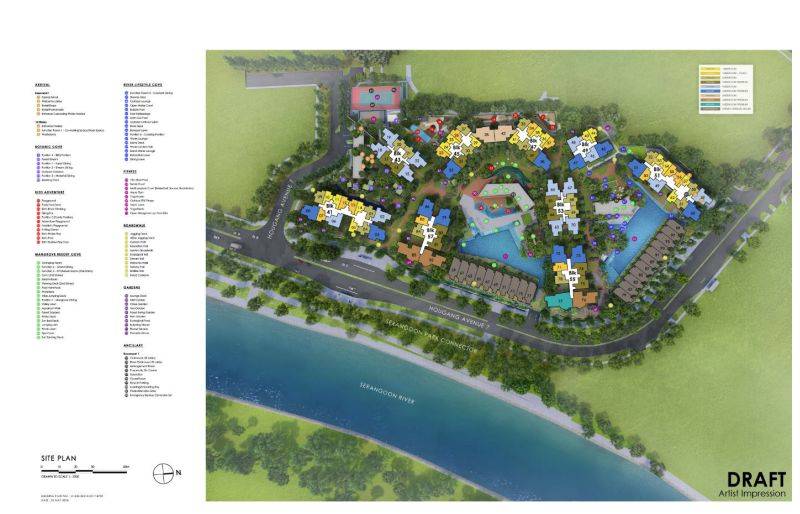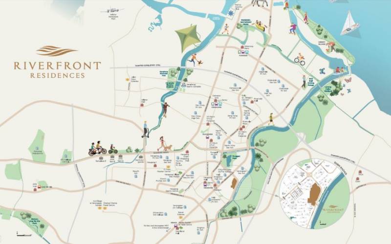 项目位于后港7道,从Riverfront项目步行到后港地铁约10分钟。由于靠近实龙岗水道(Sugei Serangoon),加建筑设计公司考虑周到的设计,大部分单位可以享受无阻挡的漂亮河景(在新加坡河景房属于罕见的),实龙岗水道边上就有公园通道,适合喜欢健身锻炼的朋友,一般跑步健身一边享受河流景观。周围有很多著名小学如圣婴小学,CHIJ女校,榜鹅小学(Punggol Primary School)等。