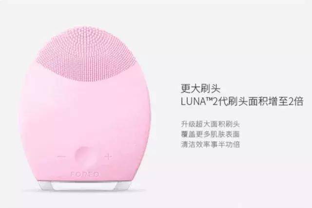 现在更新的LUNA2代比1代升级了不少,硅胶刷头的面积更大、刷毛触点更长,而且还配合增加了弯曲弧度手感更好,能照顾到边边角角~