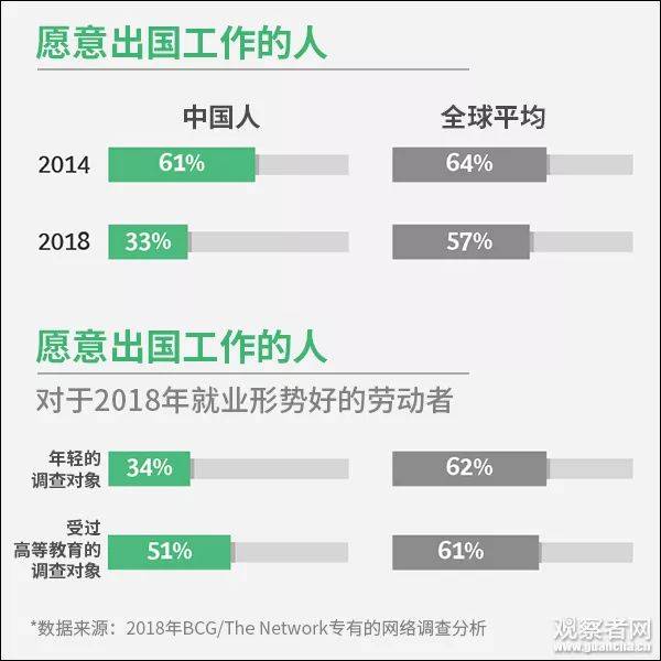 现在!中国愿意出国工作的人