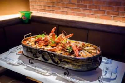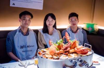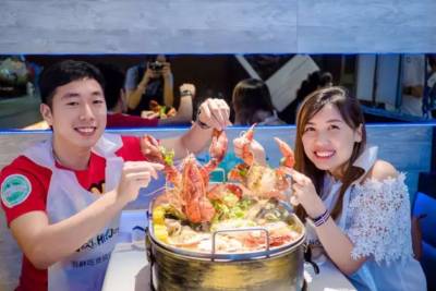 龙虾总动员 一共有99只鲜活小龙虾烹饪而成,加上三种不同的料理方法,让吃货同时领略麻辣、十三香、蒜蓉蒸三种口味。中间一直清蒸澳洲青龙虾更是高逼格鲜出一脸水。