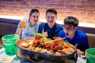 不吃海鲜的夏天是不完整的,如今流行一种新的海鲜吃法,就是将所有海鲜放到一个容器内可随心挑选自己喜欢吃的。看看这肥美味足的龙虾,蘸上味道浓厚的汤汁,简直是享受!
