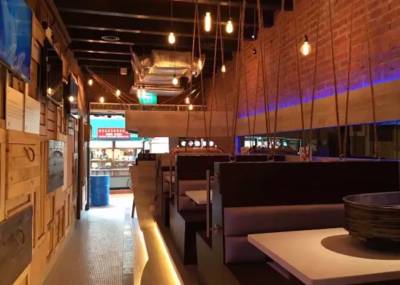 走进嗨货-Hi! JoyFul,别样的船型吧台,海洋风十足的另类设计, 食客们仿佛置身于船上,尽情品尝美食。船尾的几个水族箱,养殖著各类海鲜,现捞现做,极致新鲜体验。