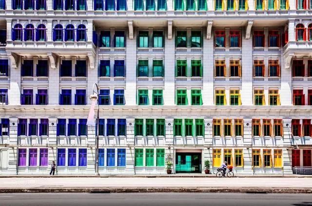 而这座建筑最吸引人眼球的则是因为它有着911扇缤纷色彩的窗户,而且又在克拉码头附近,于是成为了每一个到新加坡的人都会去拍照的点。