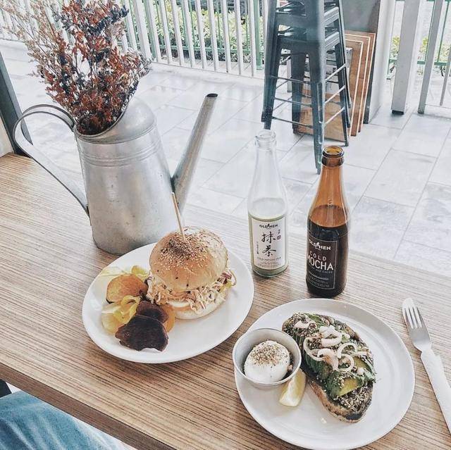 店面很小,典型的新加坡式cafe(临街的咖啡屋)。很热闹很有生活气息,阳光洒进来,心情莫名就很好。