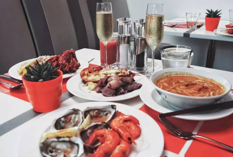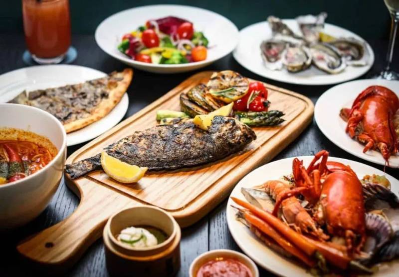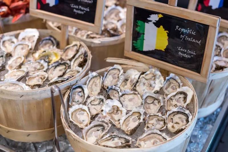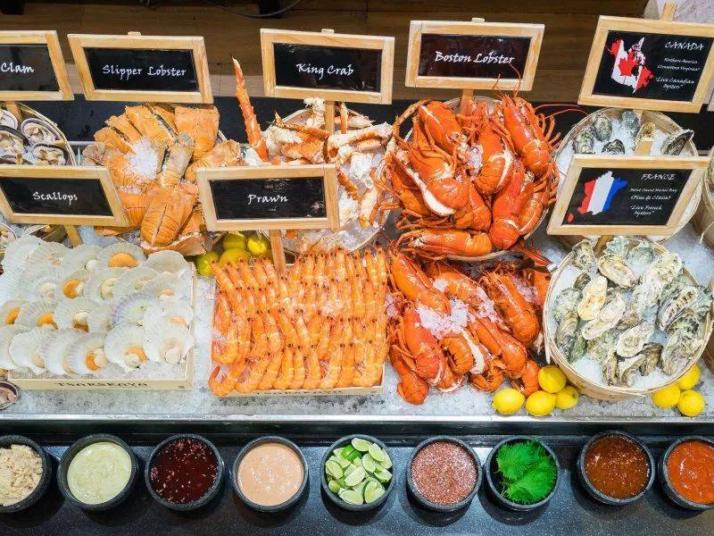 有新鲜的克莱尔生蚝,美国龙虾和帝王蟹