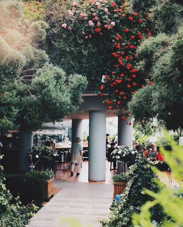 这家餐厅像是一间坐落在花园中的温室。在慵懒的午后,点上一杯咖啡,细读一本小说,享受这里的自然风光。