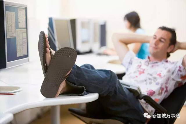 假如你在新加坡一座写字楼中,看到一个人穿着宽松休闲T-shirt,一条大裤衩,外加人字拖,别惊讶他是不是刚睡醒,没来得及换衣服就上班,而是他真的是这样打扮上班的。