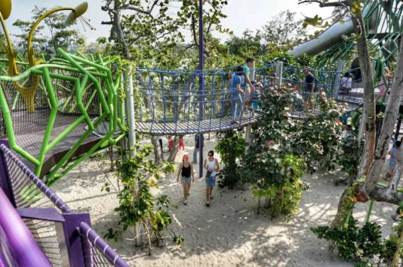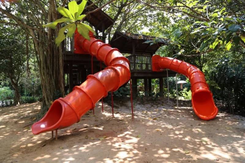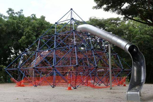 以灯塔为原型的三层游乐设施上尽情攀爬