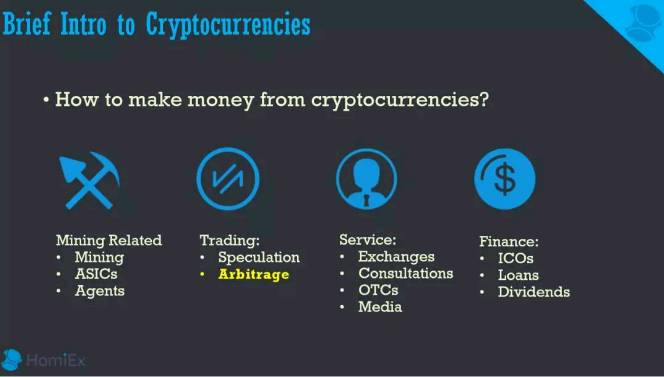 介绍完数字货币的历史后,周洪明先生也分享了如何在数字货币的领域里赚钱。数字货币的领域淘金主要有四个方面:挖矿、交易、服务、及金融。