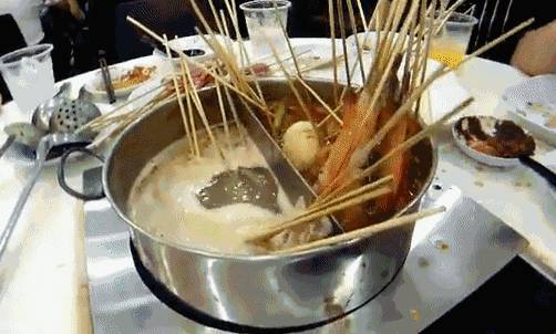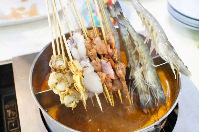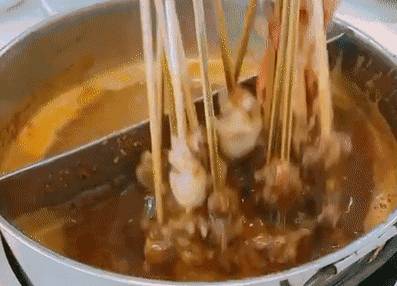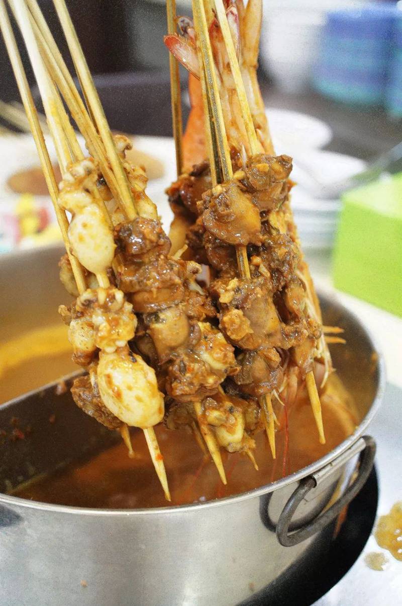 串串吸饱了沙爹汤的精华,发出诱人的香气。