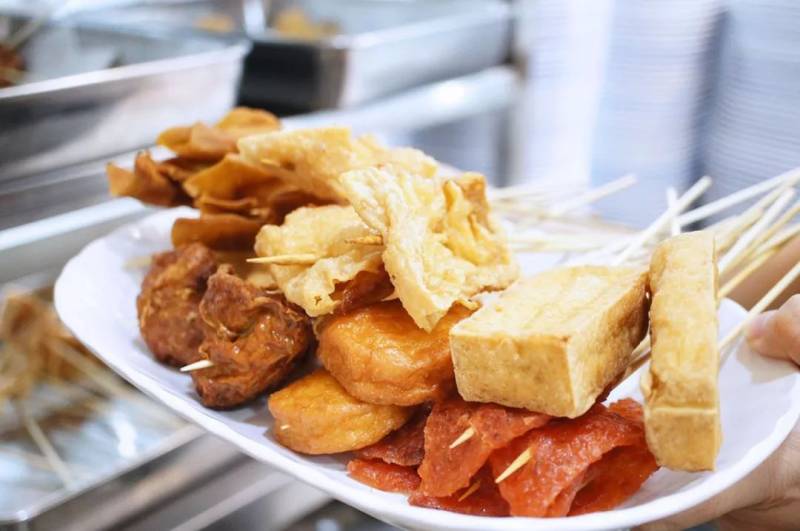 炸海鲜豆腐、炸豆干、炸腐竹、炸云吞。