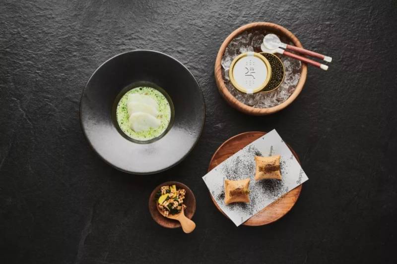 这里的7道菜品尝菜单每几个月就会换一次,但是不变的是韩式发酵酱油和醋在菜式中的运用。将传统韩式调味料和食材相结合,做出独特的味道。
