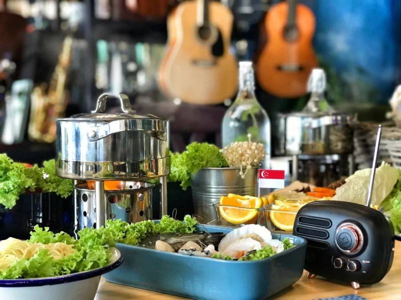 大家惊叹于东海岸这片沙滩上,竟然有这样一个音乐海鲜餐厅,先不说新加坡的那些特色菜肴,就连这里的水手迷你火锅也独具文艺气息。