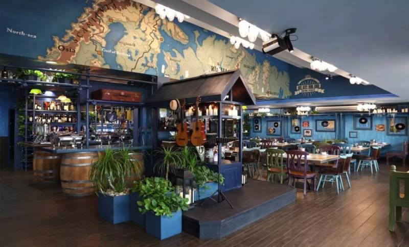 整个天花板的航海地图绘制,每把椅子的复古做旧,Richard不得不动用全新加坡的资源,炎炎烈日下亲自调度装修进展。