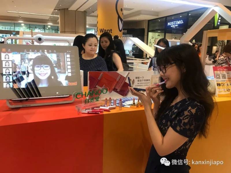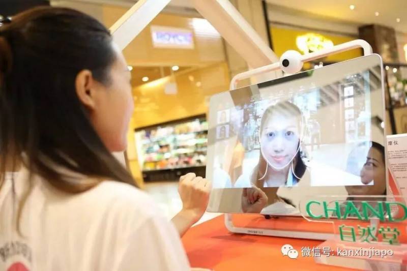 果然,女人是对化妆品没有抵抗力的,她一来就走到了自然堂柜台前,也体验了一把黑科技。