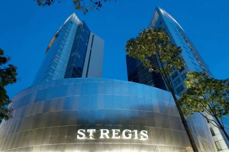 下午4点半左右,金正恩到达了瑞吉酒店。此时,酒店门口挤满了各国记者和围观群众。