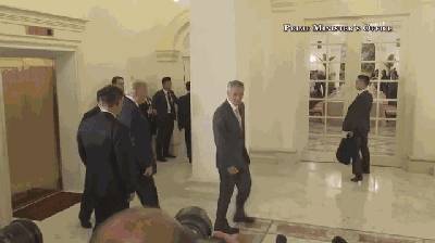 中午12点左右,特朗普抵达新加坡总统府,与李显龙总理会面。