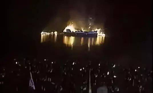 浇足了油的火船撞击焚毁