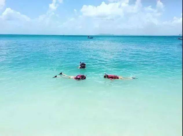还有清澈见底的碧绿海水和洁白细软的沙滩