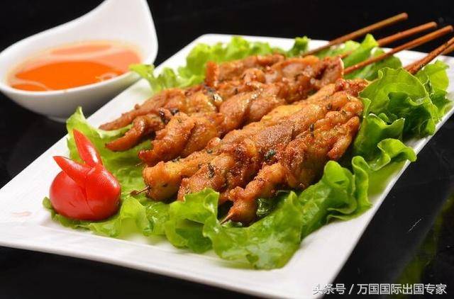 香味四溢的鸡肉沙爹是新加坡著名的马来美食,一只只鸡肉串经火炭一番烧烤后,再配上饭团、切片鲜黄瓜和洋葱,就是一道可口美味的马来小吃。沾上精心调制的黄梨花生酱,称得上绝顶美味,是本地人和游客的最爱美食之一。