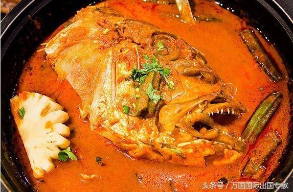 咖喱鱼头是最具新加坡风味的美食代表之一,这道香辣的印度佳肴以一大块石斑鱼头或红鲷鱼头为主,盛在一大碗热腾腾的咖喱汤中上桌,汤味辛辣香浓,鱼头鲜嫩美味。