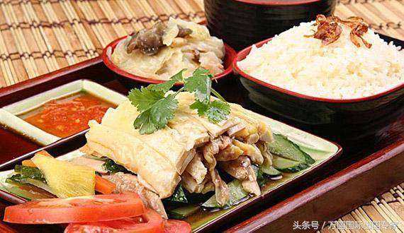 海南鸡饭是新加坡早期移民的菜色。做法简单:鲜嫩多汁的白斩鸡搭配油光黄澄香鸡饭,配生抽或者老抽和特制辣椒酱及姜蓉。烹调海南鸡饭的每一部分都必须一丝不苟,方能做出美味无比的佳肴,是新加坡美食之选。