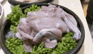 除了虾滑之外,牛蛙是小编每次来的必点菜式。因为只有在这里,才能看到端到客人桌上还“活蹦乱跳”的牛蛙。秉持着现点现杀的宗旨,保证提供的是最新鲜的食材,这样煮出来的牛蛙肉是结实鲜美的。