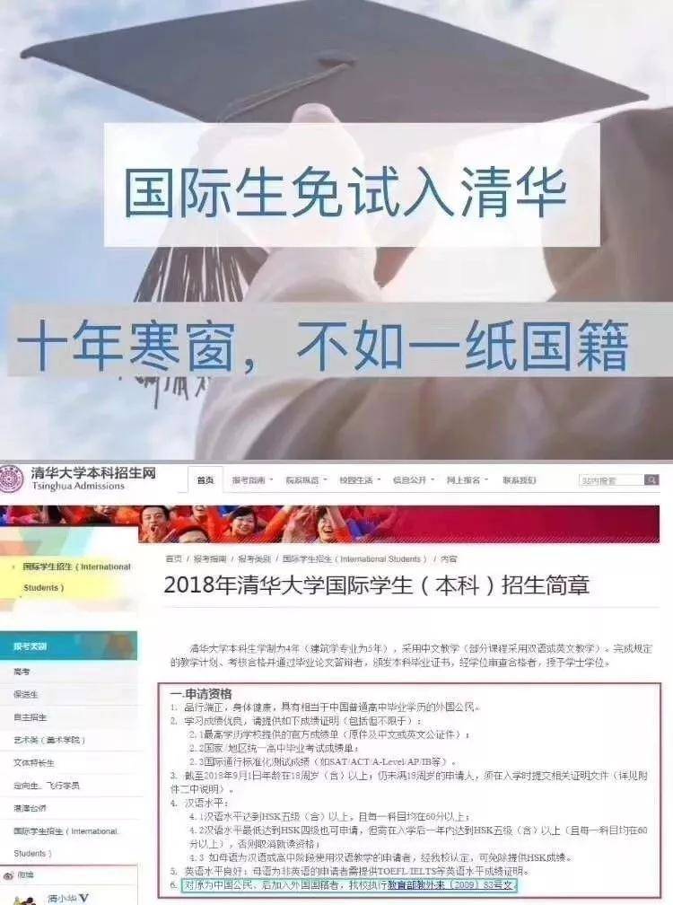 但是有人可说了,“十年寒窗苦读,不如一纸国籍!”(详情点击:2018实锤:持新加坡护照可免试上清华,十年寒窗苦读不如一纸国籍!),有了外国国籍可不用通过高考就能上清华!不过大家也别羡慕嫉妒恨,如果你英文好,你还可以凭托福上哈佛大学呢!
