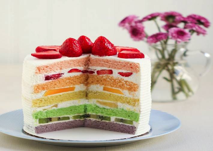 美,我们爱它没有别的,就是因为它的美!看到那五颜六色的心情已经被融化掉了,主要看气质,味道已经是次要的了! 选一个午后一杯咖啡配上一块彩虹蛋糕,让我带着恬静的心情在缤纷的色彩里徜徉一会儿,不要出来!生日party上选上彩虹蛋糕,愿望都变得多彩起来,绚烂的彩虹就是最简单的快乐 !