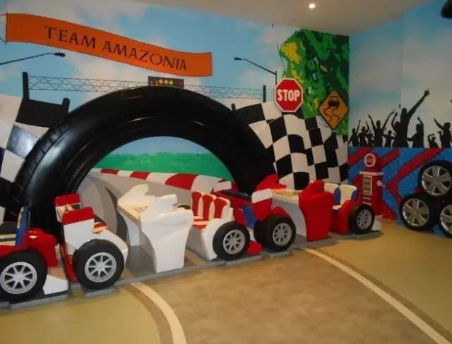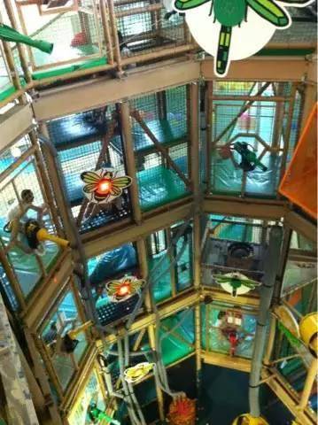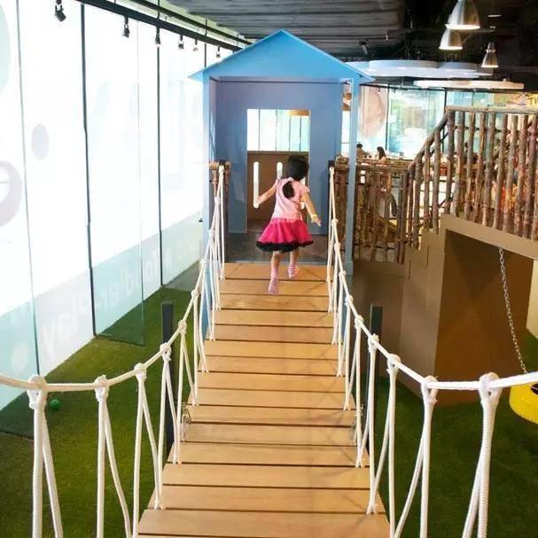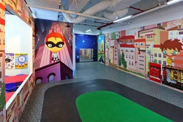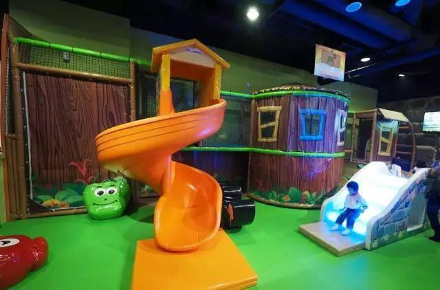 这是一间主题型家庭娱乐中心,有为0-3岁特设的幼儿区,里面有互动游戏板、音乐键盘、球池记忆迷你幻灯片;也有适合大孩子的丛林探险区,在6层楼高400平方米的区域内设有8米高的波浪滑梯、螺旋滑梯、蹦蹦床、悬浮桥和隧道。 还有适合亲子互动的太空球和3D迷你高尔夫。