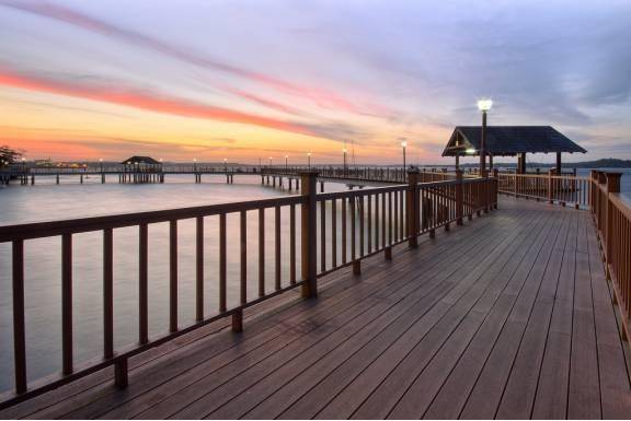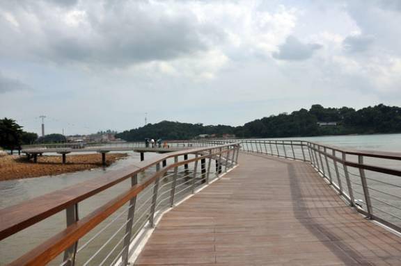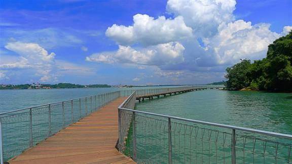 樟宜海滩和帆船俱乐部的风景尽收眼底,这个地方既有林荫遮日的大树,又有木板栈道,它的美是可以从早美到晚的,带上小朋友简直太合适了,浮桥有六段组成,不远处还可以看到海面和海上的船呢