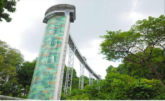 这里11层楼高的高架上最大的好处是可以登高望远,在上面圣淘沙的美景尽收眼底,保证对让你对平日里去的圣淘沙多了一种新的诠释~