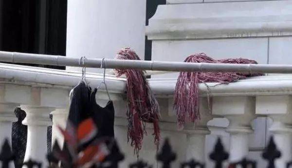 打扫阿姨随手晾晒拖把