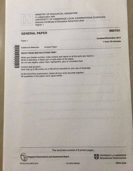 下面让我们来欣赏一下2017年新加坡高考(A水准)作文题目,看看你能得几分。(请忽略5毛的翻译)