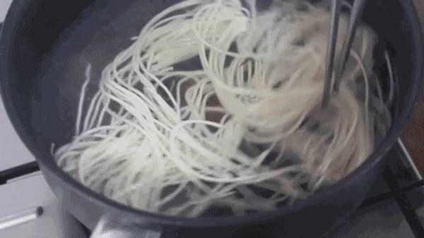 面条很快就软了,夹起来的时候就能感觉到面条很厚实而且有力道。煮得久了,面也不会烂。