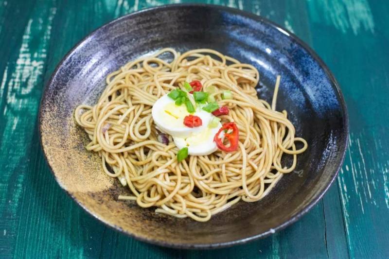 葱油拌面用的是来自宜兰三星乡的青葱。三星乡常年雨水充沛,所以这里出产的青葱白而长,口感细致、葱味芳香,十分出众。