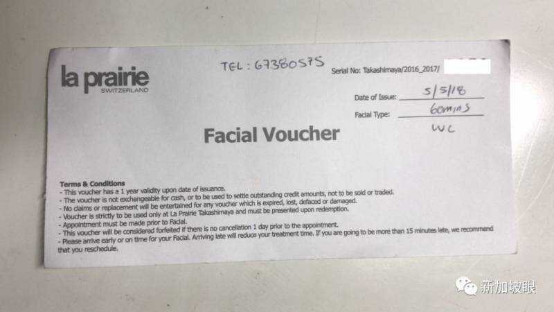 收费:$250/75分钟,在新加坡市区柜台买LA MER产品注册会员,买到$750就会赠送免费的护理体验,运气好的话还会遇到facial with friend的活动,赶紧去抱紧你土豪朋友的大腿!