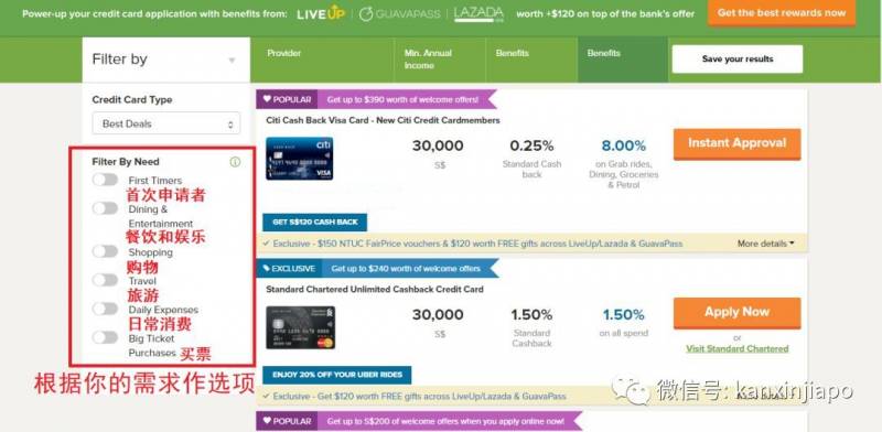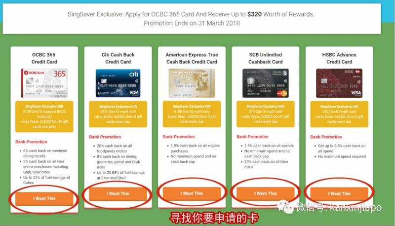 通过这个比价网站( singsaver.com.sg)申请信用卡,还有一些独特优惠,是连银行官方都没有的哦。
