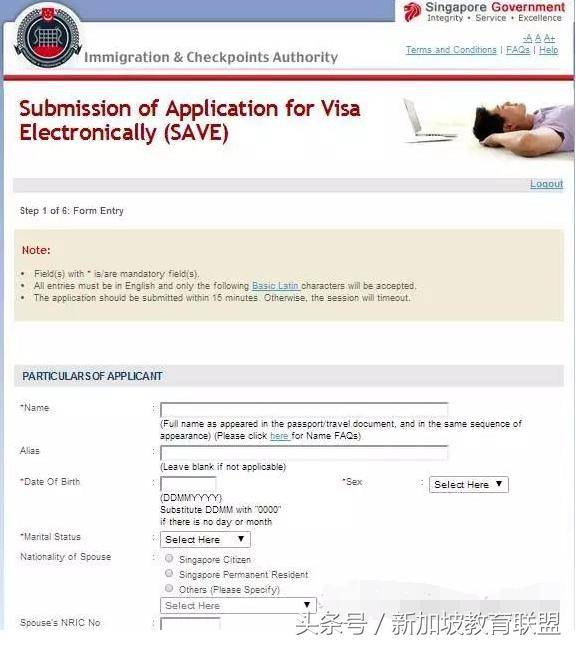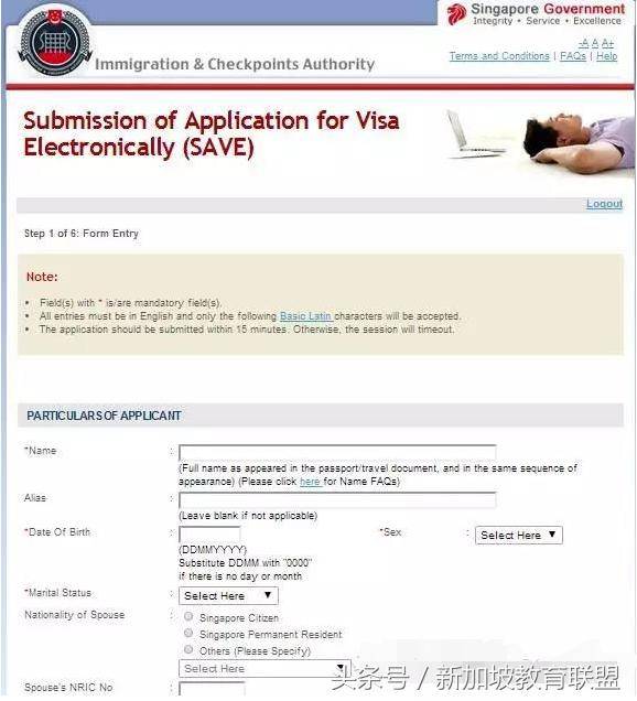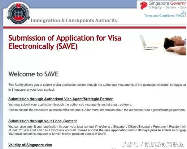 新加坡公民或永久居民持有SingPass密码并且是申请者的介绍人,可通过新加坡移民与关卡局网站 (http://www.ica.gov.sg/)利用签证电子系统(SAVE)申请签证 。