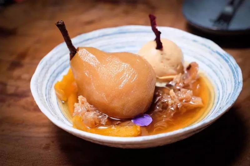 不妨用新鲜的水煮梨($12)来抚慰你的味蕾