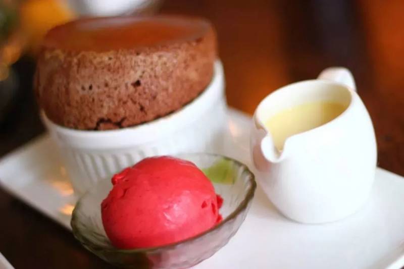 你可以用小勺把舒芙蕾的顶部轻轻敲开