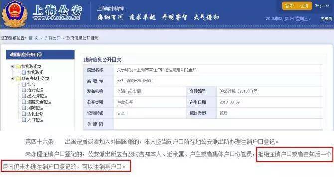 3月13日,上海市公安局在其官网公布《上海市常住户口管理规定》全文,其中第46条规定: