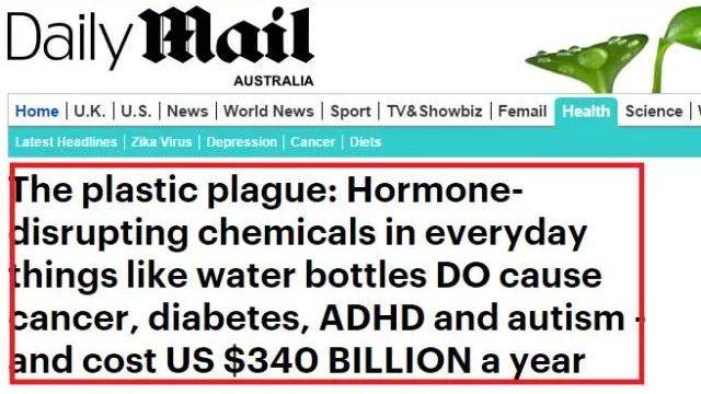 《每日邮报》曾刊登了一篇文章指出,塑料瓶含有干扰人体荷尔蒙的化学物质,会致癌、导致糖尿病、多动症和孤独症。