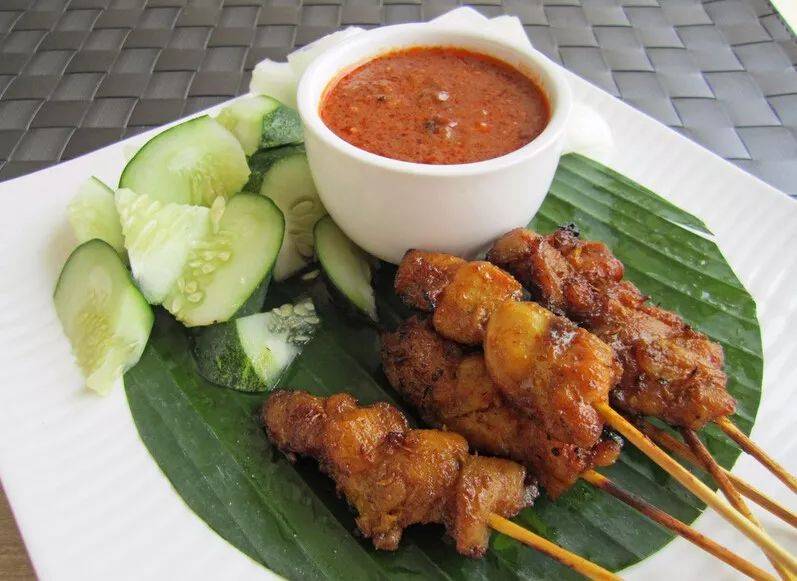 沙爹是新加坡最著名的马来菜之一,是一种即烤即熟的肉食,在新加坡极受欢迎。沙爹通常成10串进行售卖,蘸点甜辣的花生酱口味则更加独特,通常还搭配洋葱片、黄瓜片以及裹在椰子叶中的马来饭团(ketupat)一起吃。